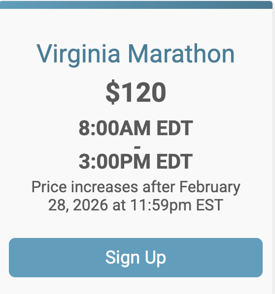 Virginia Marathon - $135